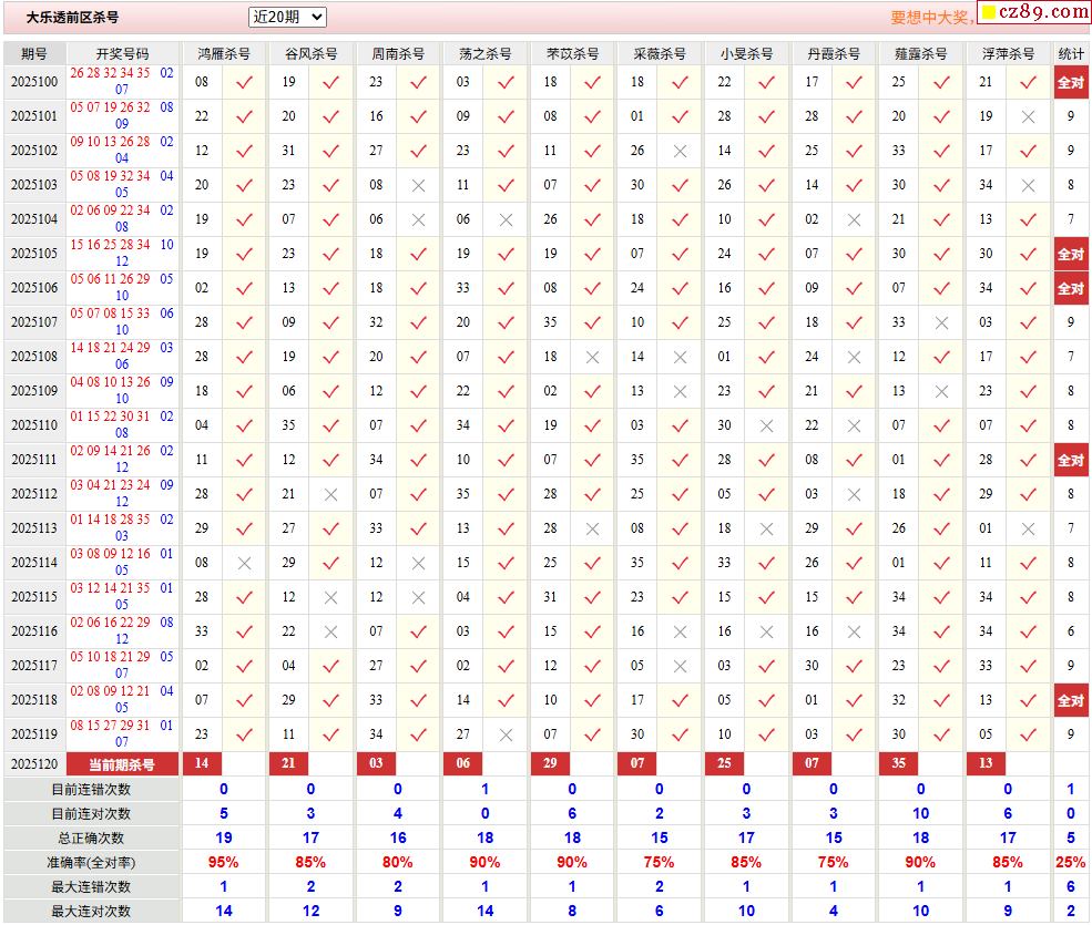 > 25年120期彩票专家超级大乐透前后区杀号图表